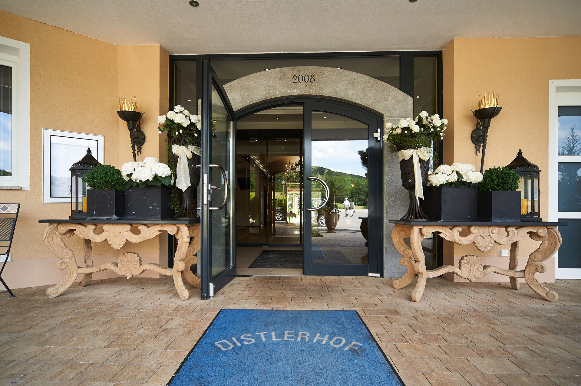 Für das allseits propagierte "Carpe Diem" - Genieße den Tag - bietet der Distlerhof einen würdigen Rahmen. Mit den ausnehmend schön gedeckten Tischen in der Gaststube, in den Räumen für Feierlichkeiten und auf der wunderbaren Panorama-Sommerterrasse, umgeben vom Blumenmeer des gepflegten Gartens - ein Rastplatz für Menschen, die abseits der Alltagshektik noch Muße suchen.